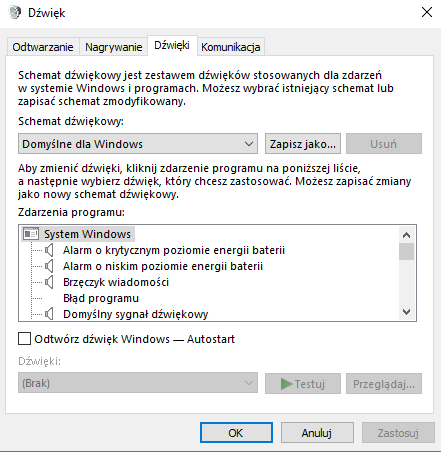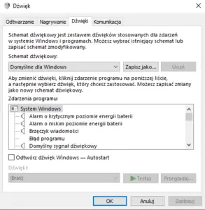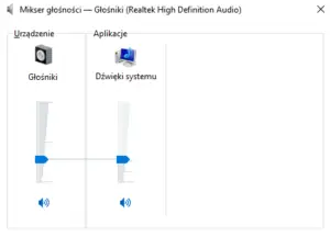 Sprawdzanie i testowanie systemu dźwiękowego możemy przeprowadzić używając apletu Sprzęt i dźwięk z Panelu sterowania. W aplecie Dopasuj głośność systemu dopasowuje się głośność urządzeń i aplikacji systemowych.